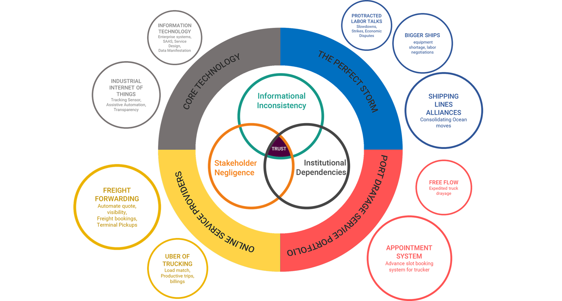 Container supply chain system is a complex network of different systems within a system which is highly human intensive. The complexity of trucking operation at the container terminals often leads to the gate congestion and other inefficiencies in the terminals ecosystem and its immediate stakeholder ecosystems.