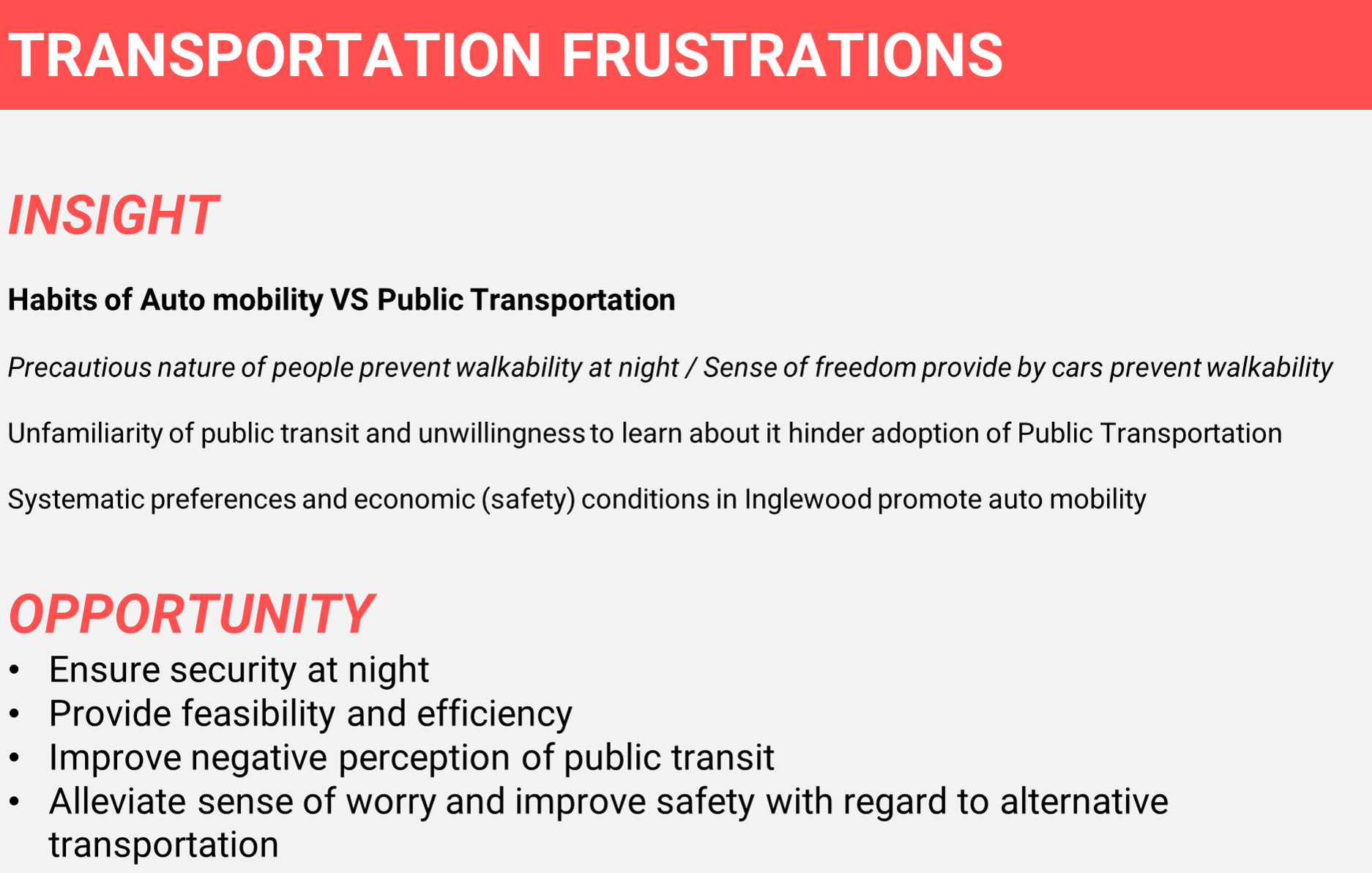 RESEARCH GOALS | Mobility Solution - Urban Experience - Human Centered