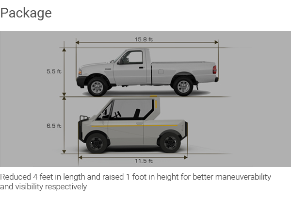The vehicle includes a carefully designed interior and exterior package along with intellectually calculated proposed power system ideal for the port.